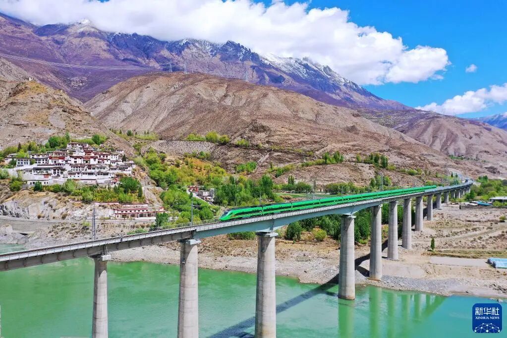 复兴号列车行驶在西藏朗县境内(2022年4月14日摄)。新华社记者 觉果 摄