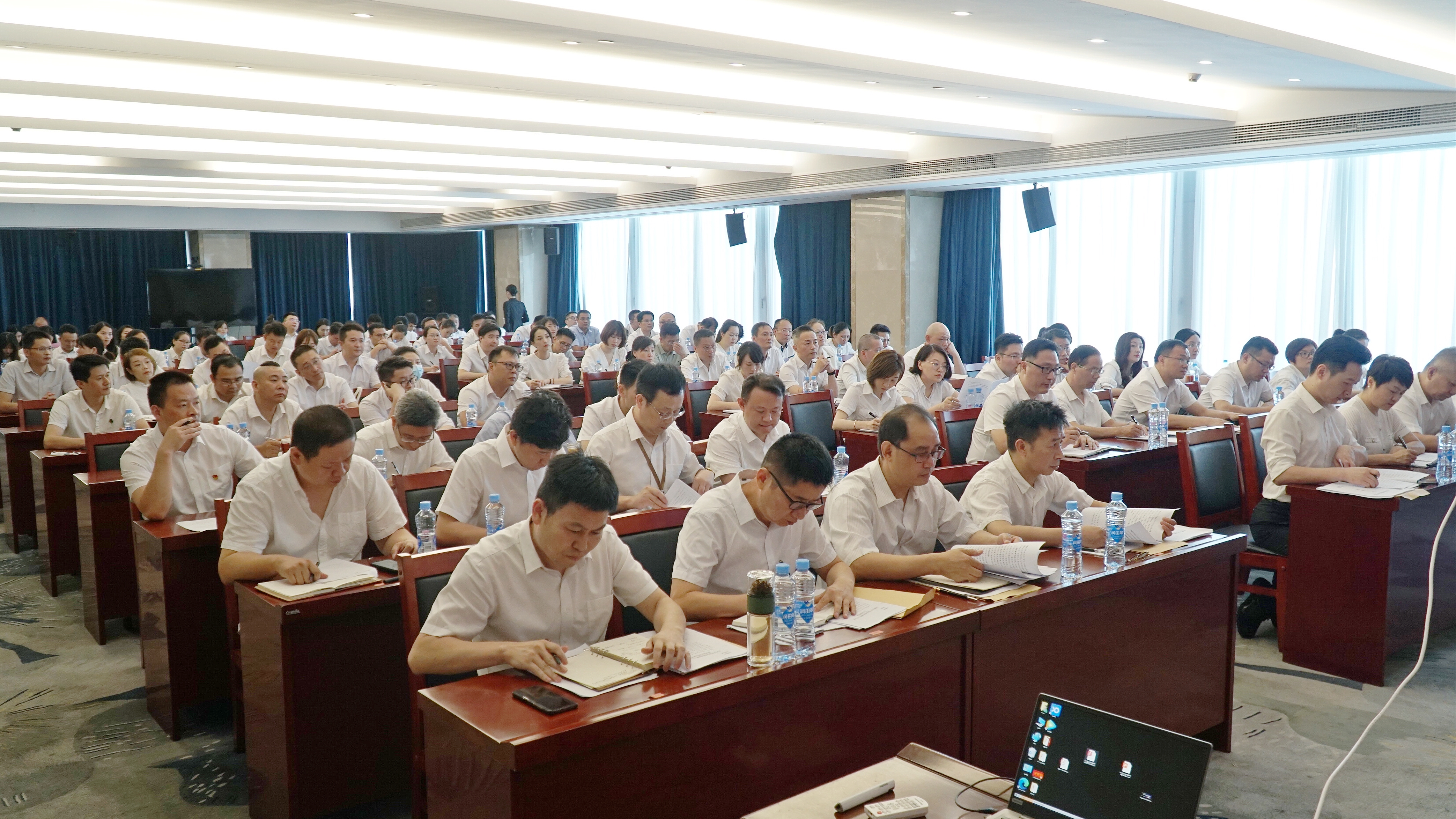 7月21日下午,集团公司党委书记、董事长李晓浩主持召开上半年经济运行分析会,练红梅、刘小玲、柯亨龙、徐光华、林翰、龚纯良、肖红松、罗会能、熊丽华等集团领导出席,集团公司各部室正副职及经理以上人员、所属子公司班子成员及中层管理人员等130余人参加。