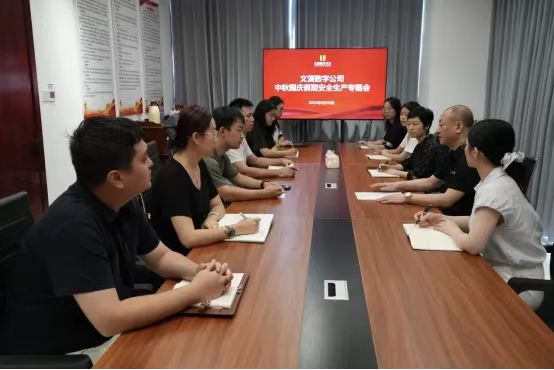 9月30日,文演数字公司召开安全生产工作会,传达学习集团下发的《关于切实做好中秋国庆假期和第四季度安全生产工作的通知》文件精神,研究部署节前及四季度安全生产重点任务,全力筑牢公司安全防线。公司副总经理涂然主持会议。