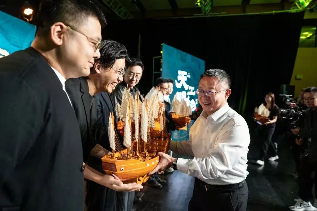 王进展、徐光华、刘岚共同为主创和主演颁发纪念“天工大船”,表彰他们为百场巡演作出的卓越贡献。