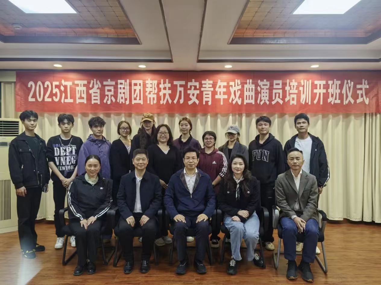 根据《江西文演集团2025年乡村振兴帮扶工作计划》,11月1日下午,省京剧团帮扶万安县采茶剧团青年演员培训(第二期)开班仪式在南昌剧场举行,集团副总经理胡志坚出席,省京剧团资深戏曲教师与10名万安采茶戏青年学员开展授课交流。