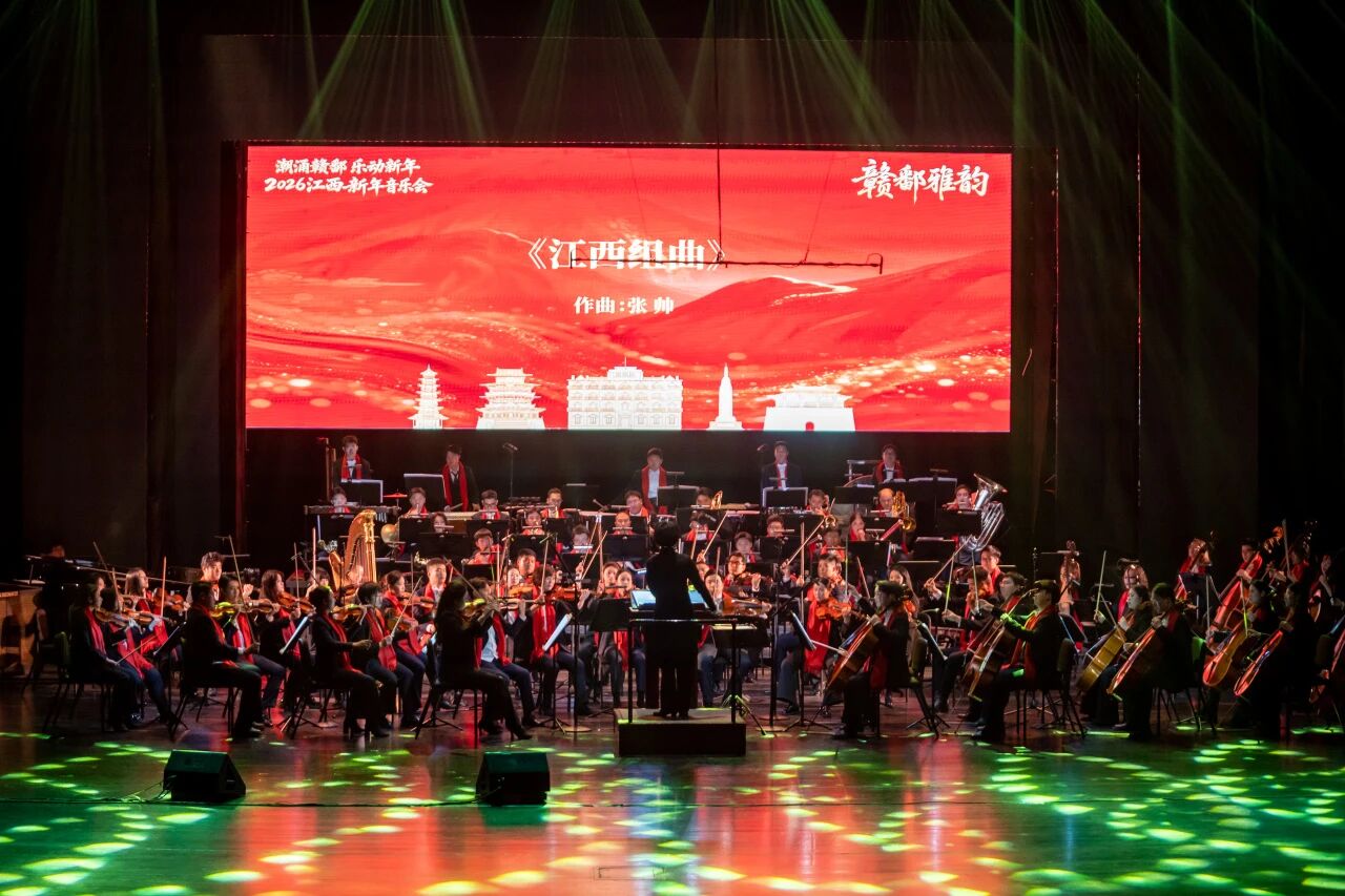 12月28日晚,由中共江西省委宣传部指导,江西省文旅厅、江西省文联、江西文演集团联合主办,南昌交响乐团、南昌交响乐团附属青少年交响乐团倾情演绎,中央音乐学院音乐人工智能中心提供技术支持的2026江西新年音乐会,在江西艺术中心大剧院隆重举行。 省直相关单位代表与社会各界人士一同观看了这场兼具科技与文化底蕴的艺术盛宴,共迎新年华章。