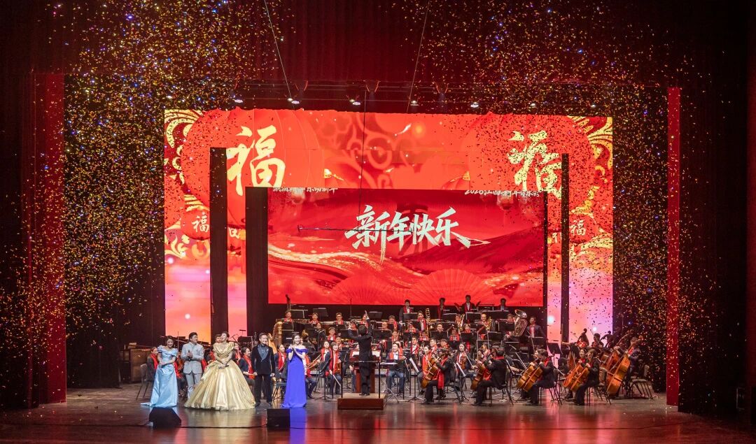 音乐会特邀指挥家朱曼执棒,更有特殊“新成员”——AI机器人“智音”跨界登场。阎维文、王喆、黄训国、张雨轩、付芮等一众艺术家齐聚,通过交响演奏、独唱、独奏等丰富艺术形式,呈现了一场传统底蕴与未来想象碰撞融合的演出。整场音乐会以《智启未来》《新年乐章》《赣鄱雅韵》《时代新篇》四大篇章徐徐展开,层层递进、精彩纷呈。